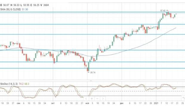 Поддержку ценам на нефть оказали ожидания масштабных финансовых вливаний в американскую экономику со стороны новой администрации Байдена в самое ближайшее время. Вместе с тем Международное энергетическое агентство (IEA) понизило прогноз спроса на нефть, что, однако, было проигнорировано участниками рынка.